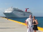 Well, this past month my wife and I got a chance to take a cruise to Cozumel, Mexico..... I was one of the top providers in my company and they paid for the whole trip.... (I love my job). This was the first time my wife or I had ever been to Cozumel and let me just tell you, it won't be the last time either. I have never in my life seen such beautiful and clear water... It makes you step back and think "God creates such beautiful things". I had heard that the water was clear, but I was talking to a master scuba diver (in spanish I might add....... ok...ok.....my wife might have help me a little bit...LOL) and he said that the day we were there water visiblity was 300 meter...WOW!!! Now that what I call spot fishing....LOL.